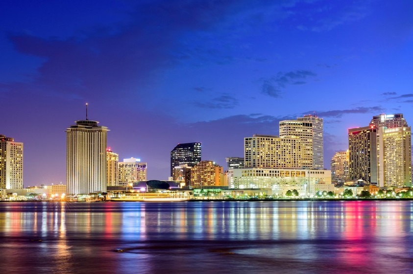 La ciudad de Nueva Orleans se encuentra al sur de los Estados Unidos en el estado de Louisiana, sobre el delta del río Mississippi.