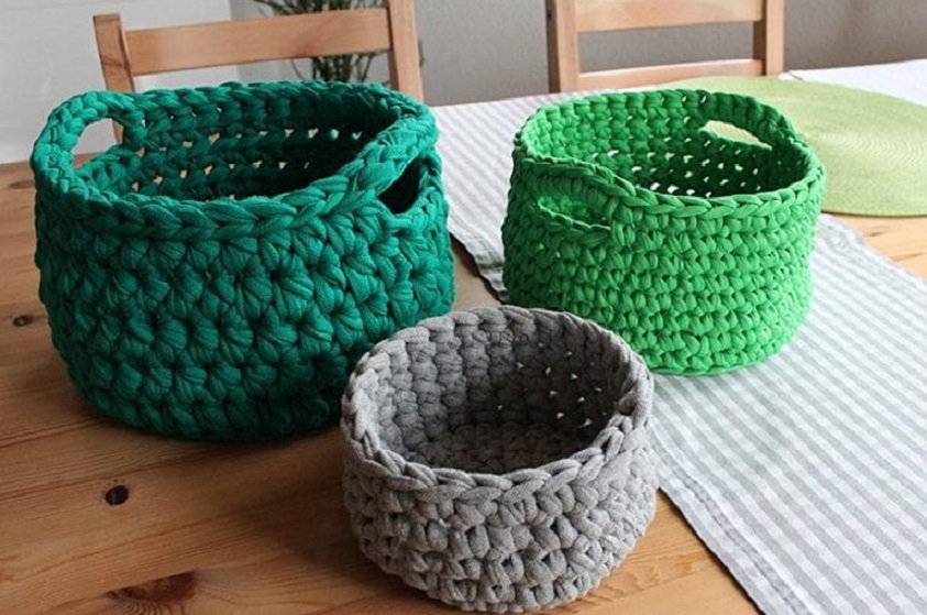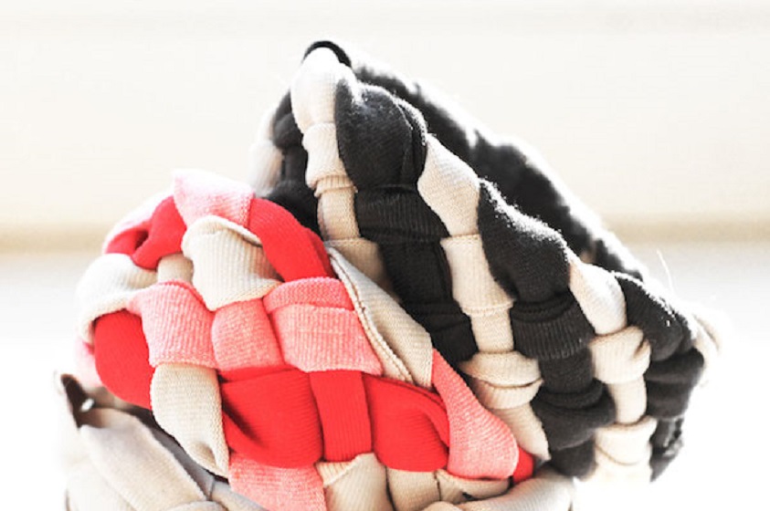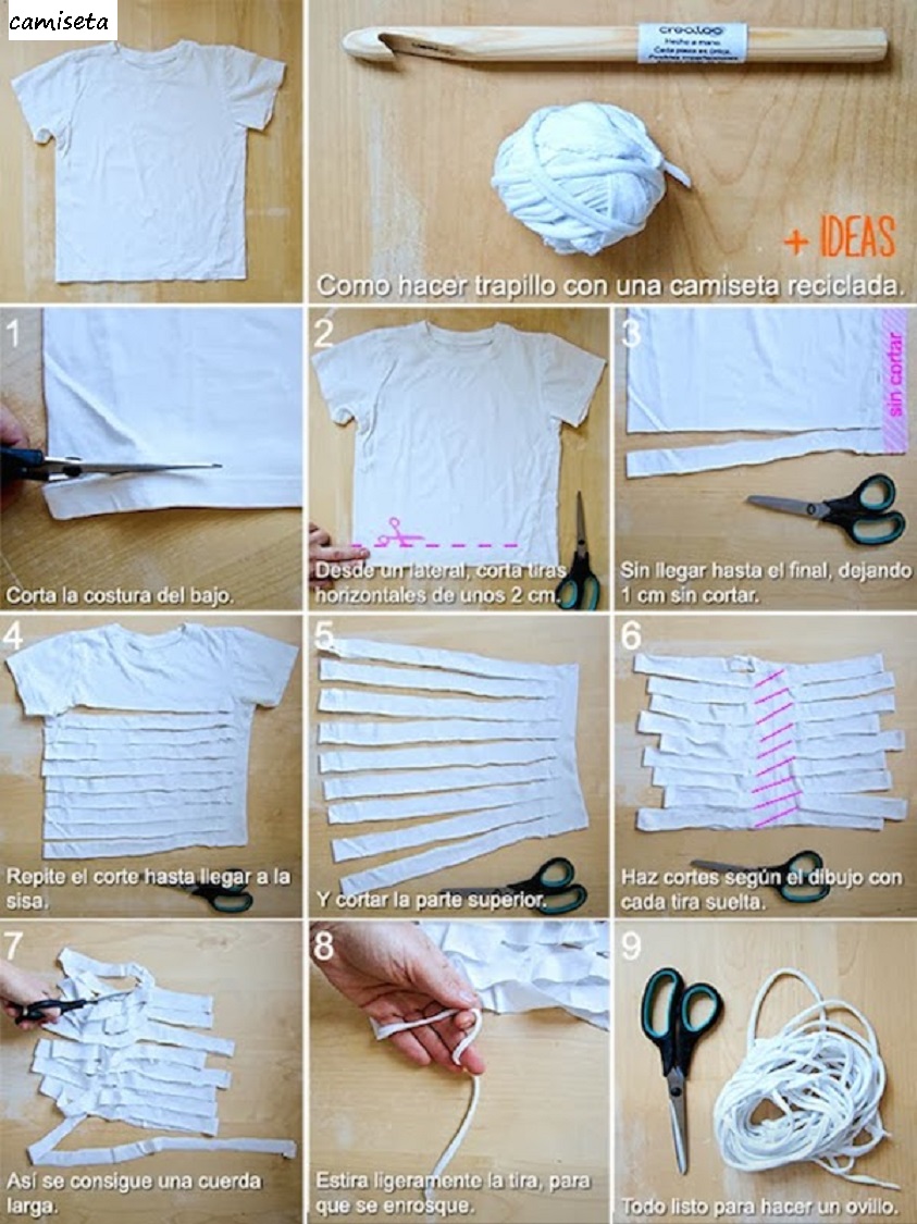 Con tiras de camisetas viejas podemos hacer un material que se le conoce como “trapillo” y que nos puede servir para hacer muchas manualidades tejidas o trenzadas como lo pueden ser las pulseras, alfombras o cestas que quedan maravillosas, coloridas y súper originales.