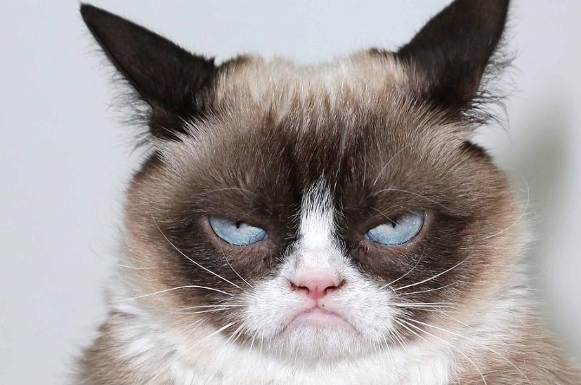 5.Grumpy Cat: Este gato que acaba de morir el mes pasado fue toda una celebridad en internet con miles de memes y seguidores por su divertida cara de enojado.