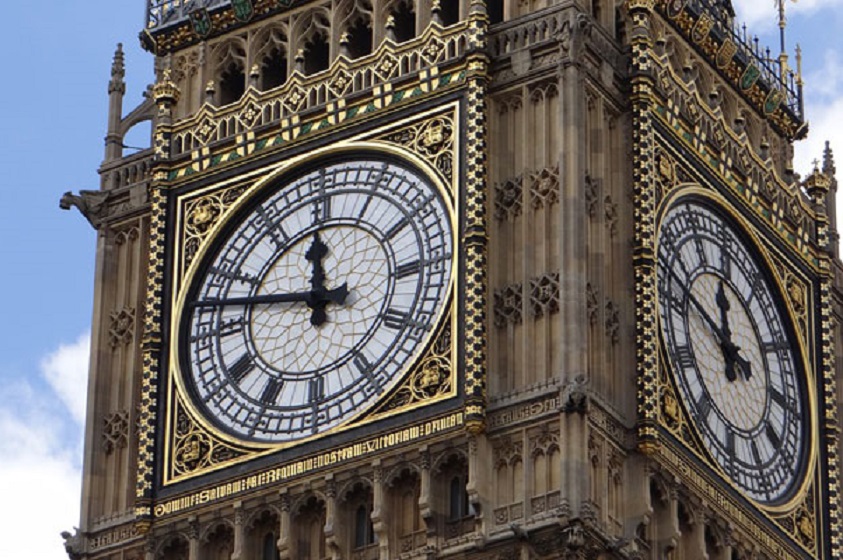 El reloj de la Torre del Big Ben, compuesto por un reloj de 7 metros de diámetro en cada una de sus caras, fue puesto en marcha en mayo de 1859. Hoy en día se ha convertido en un símbolo de la nación y sus campanadas son transmitidas a diario por la cadena de radio de la BBC.