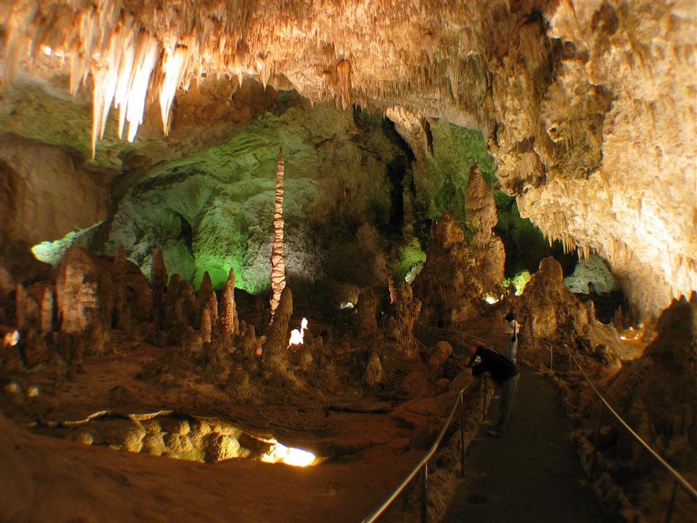 Las montañas de Guadalupe, al sudeste de Nuevo México y Texas occidental, esconden un impresionante número de cavidades subterráneas, 117 de las cuales forman el Parque Nacional de las Cavernas de Carlsbad. Se trata de las cuevas más grandes de América del Norte, con impresionantes estalactitas y estalagmitas, y muchas de ellas están todavía están sin explorar. La cueva más asequible y preparada para la visita es la Caverna Carlsbad a cuya cámara subterránea se puede acceder en ascensor.