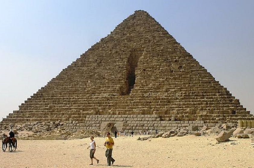 La pirámide de Micerino es la menor de las tres célebres pirámides de la necrópolis de la meseta de Guiza. A Menkaura, faraón de la dinastía IV, se le atribuye ordenar construir esta pirámide de 108,5 m de base y 65,5 m de altura originalmente, actualmente 61 m debido a la pérdida de su recubrimiento. Durante las exploraciones arqueológicas realizadas en el siglo XIX, se encontró un sarcófago de basalto y cerca un ataúd de madera antropomorfo, con una momia en su interior.
